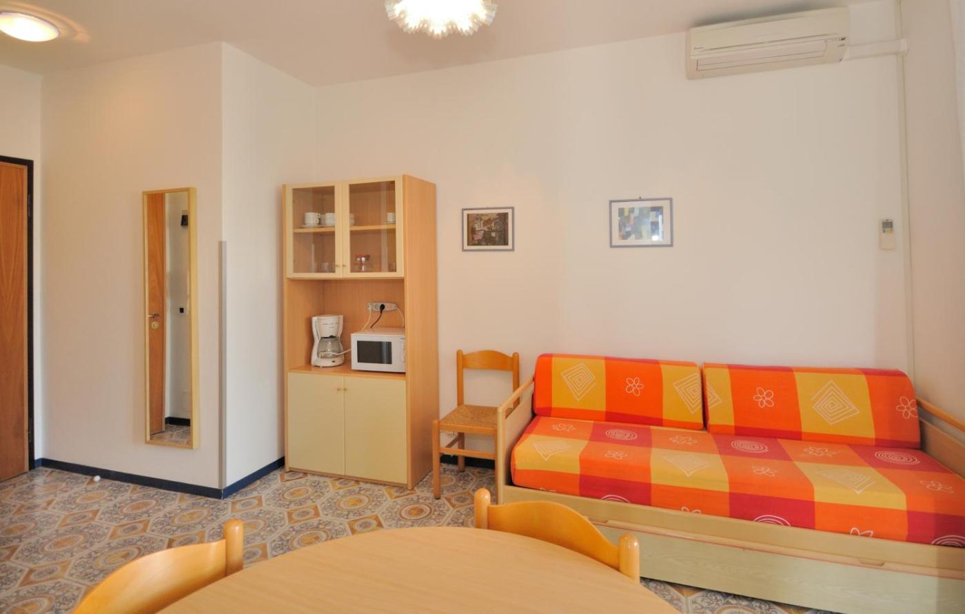 Two-Bedroom Apartment. This air-conditioned apartment includes 3 living rooms, 2 separate bedrooms and 1 bathroom with a shower. Guests can make meals in the kitchenette that is fitted with a stovetop, a refrigerator, kitchenware and a microwave. Boasting a balcony, this apartment also offers a coffee machine, a wardrobe and a TV with satellite channels. The unit has 4 beds.