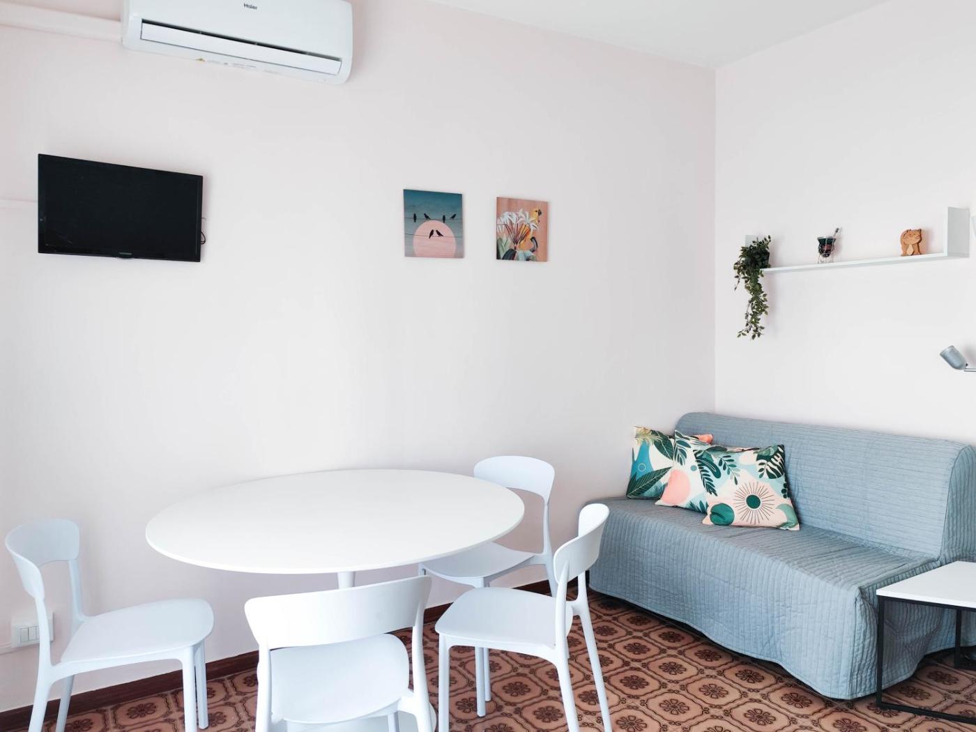 Studio. The studio features air conditioning, a dining area, as well as a private bathroom boasting a shower and a bidet. The studios kitchenette, which has a stovetop and a refrigerator, is available for cooking and storing food. This studio provides a wardrobe, a TV and a balcony. The unit has 2 beds. ;