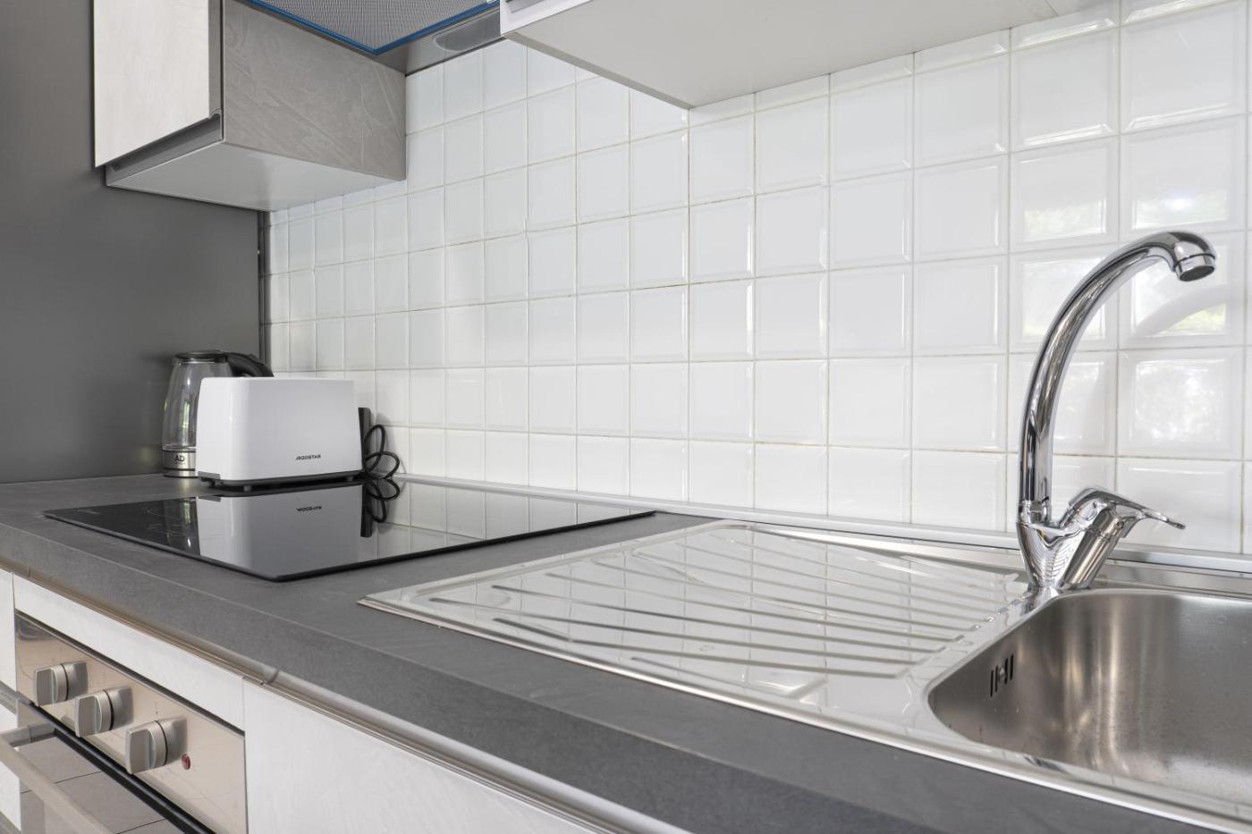 One-Bedroom Apartment. This apartment consists of 1 living room, 1 separate bedroom and 1 bathroom with a shower and free toiletries. The fully equipped kitchen features a stovetop, a refrigerator, a dishwasher and kitchenware. The air-conditioned apartment provides a flat-screen TV with streaming services, a washing machine, a tea and coffee maker, a seating area as well as garden views. The unit offers 2 beds.