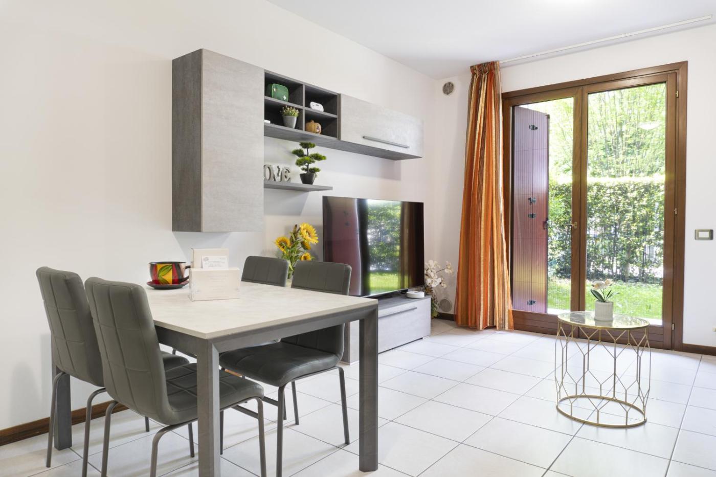 The apartment comes with 1 bedroom, 1 bathroom, bed linen, towels, a flat-screen TV with streaming services, a dining area, a fully equipped kitchen, and a terrace with garden views. Guests can enjoy a meal on an outdoor dining area while overlooking the quiet street views.