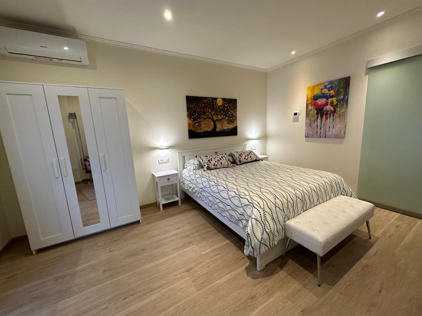 Double Room with Private Bathroom. Providing free toiletries and bathrobes, this double room includes a private bathroom with a shower, a bidet and a hairdryer. In the well-fitted kitchenette, guests will find a stovetop, a refrigerator, kitchenware and a microwave. The spacious air-conditioned double room provides a flat-screen TV with streaming services, a private entrance, soundproof walls, a minibar as well as garden views. The unit offers 1 bed.
