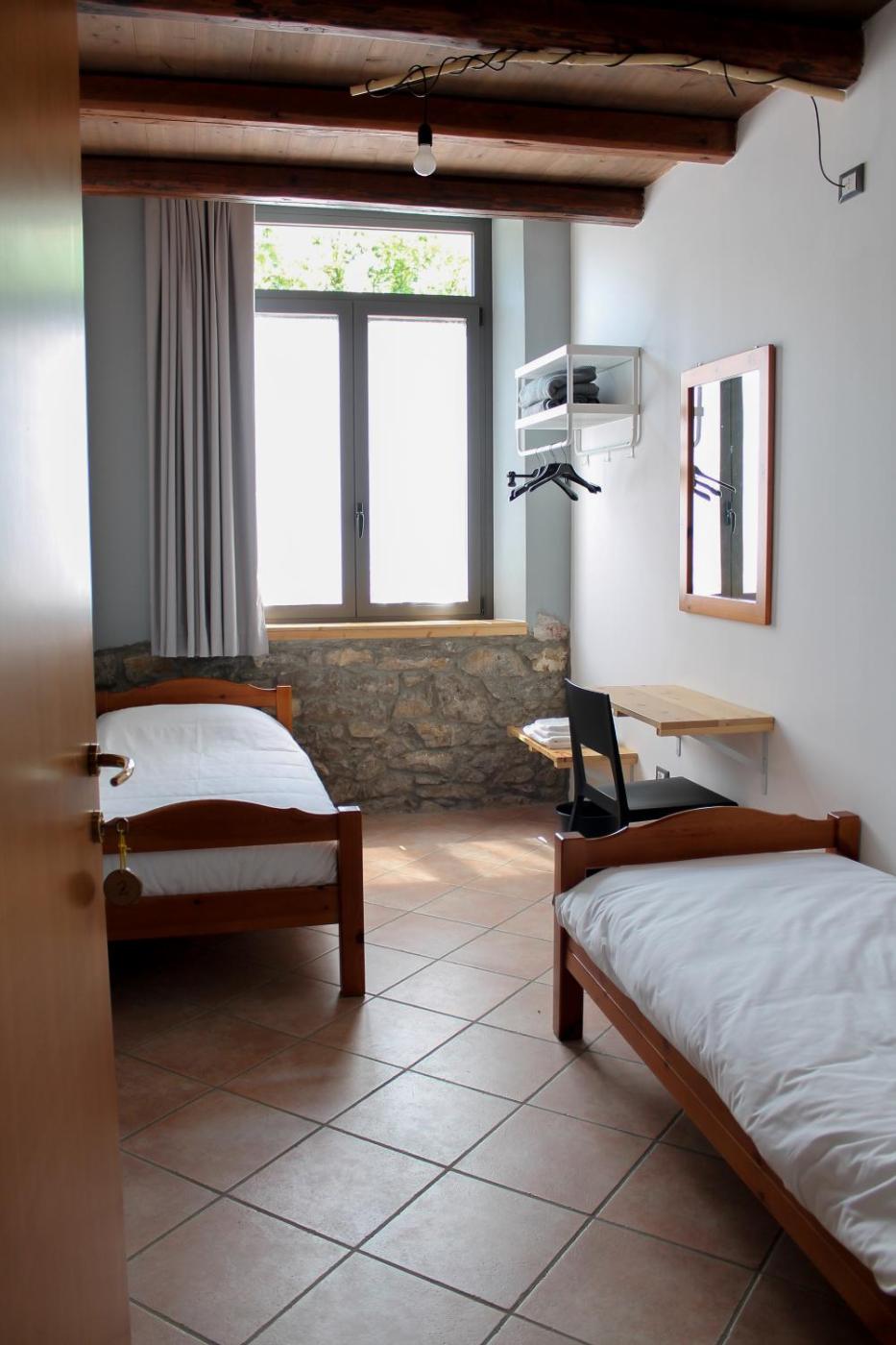 Triple Room with Shared Bathroom. The triple room has a quiet street view. The unit has 2 beds. ;