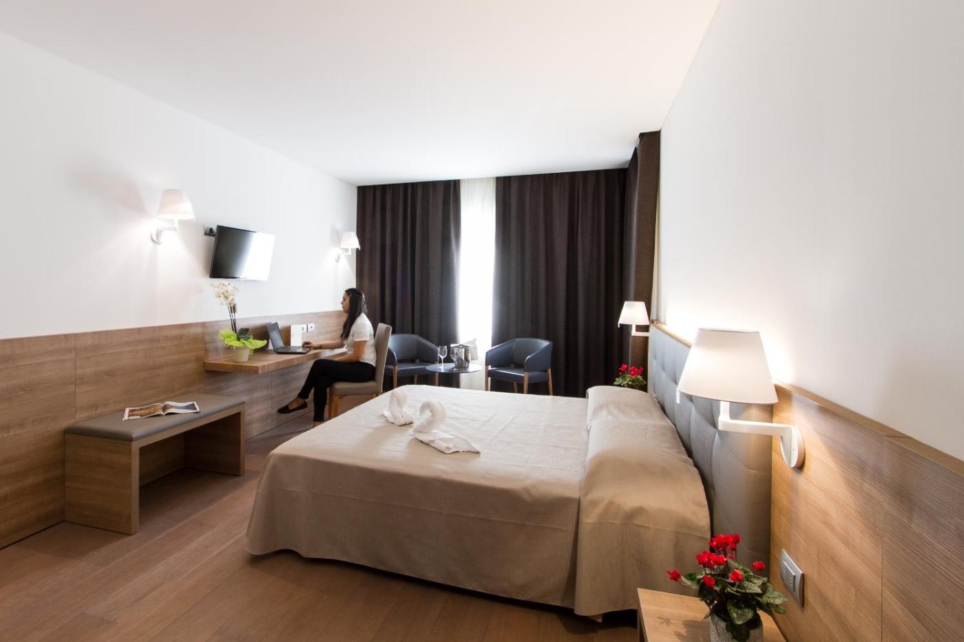 A sweet Italian breakfast with croissants, jam and hot drinks is served daily, while savoury options like eggs, cold cuts and cheese are available on request. There is also a restaurant serving Italian cuisine and pizza.