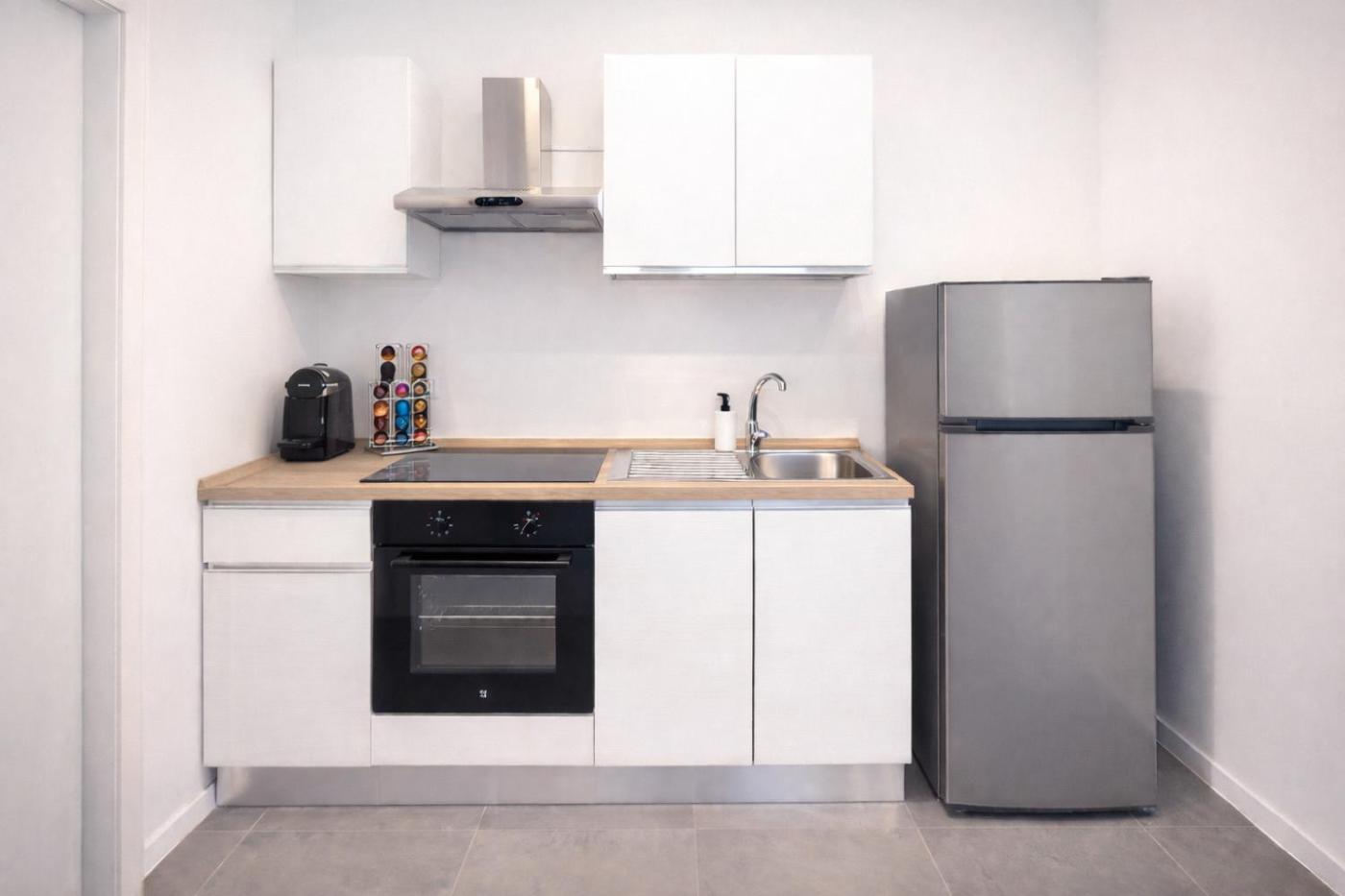 One-Bedroom Apartment. This apartment includes 1 living room, 1 separate bedroom and 1 bathroom with a shower and free toiletries. In the fully equipped kitchen, guests will find a stovetop, a refrigerator, a dishwasher and kitchenware. The air-conditioned apartment offers a flat-screen TV with streaming services, a washing machine, soundproof walls, a tea and coffee maker as well as garden views. The unit has 2 beds.