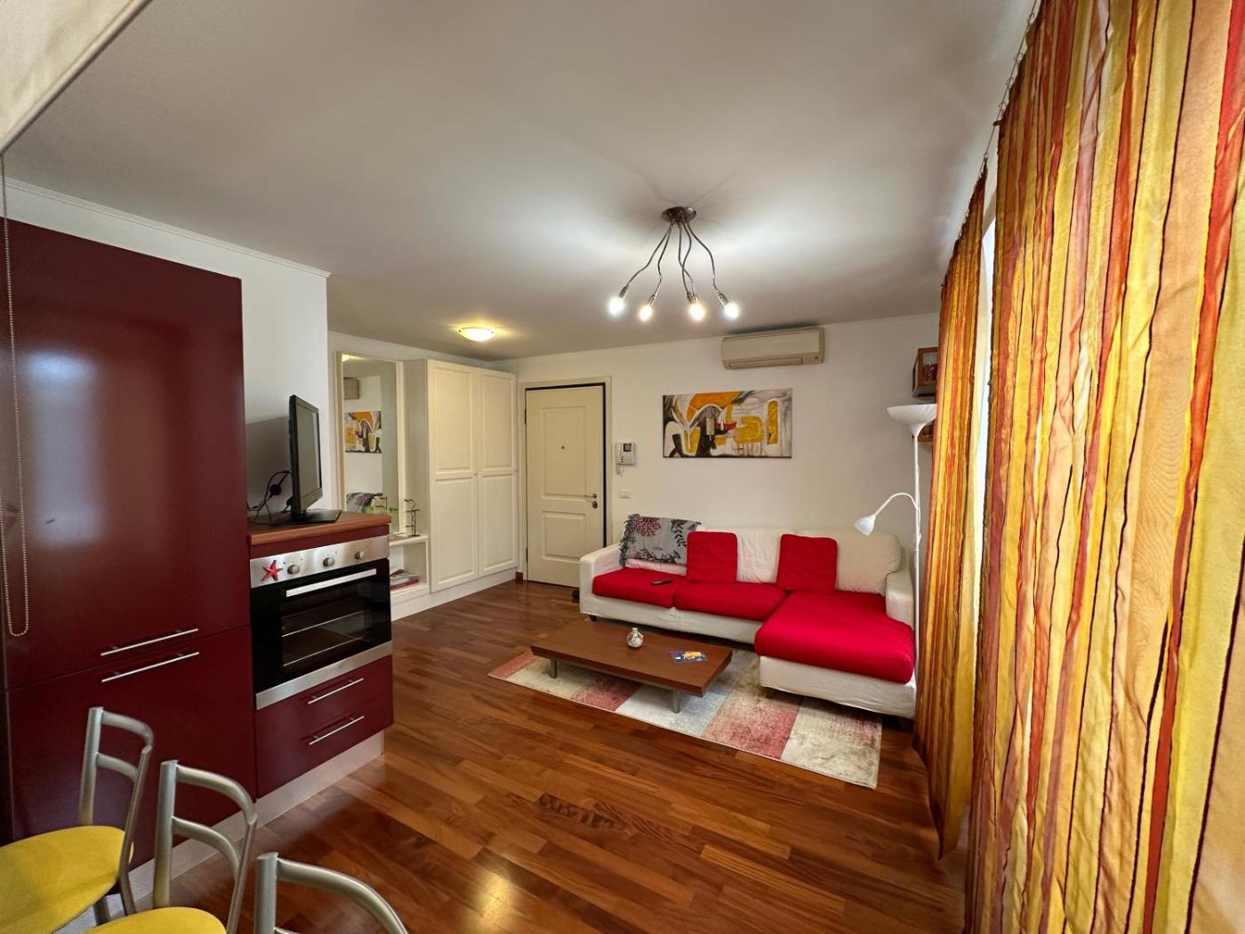 One-Bedroom Apartment. Boasting a private entrance, this air-conditioned apartment comes with 1 living room, 1 separate bedroom and 1 bathroom with a shower and a bidet. Guests can make meals in the kitchen that features a stovetop, a refrigerator, a dishwasher and kitchenware. The apartment has parquet floors, a seating area with a flat-screen TV, a washing machine, a tea and coffee maker as well as city views. The unit has 2 beds.
