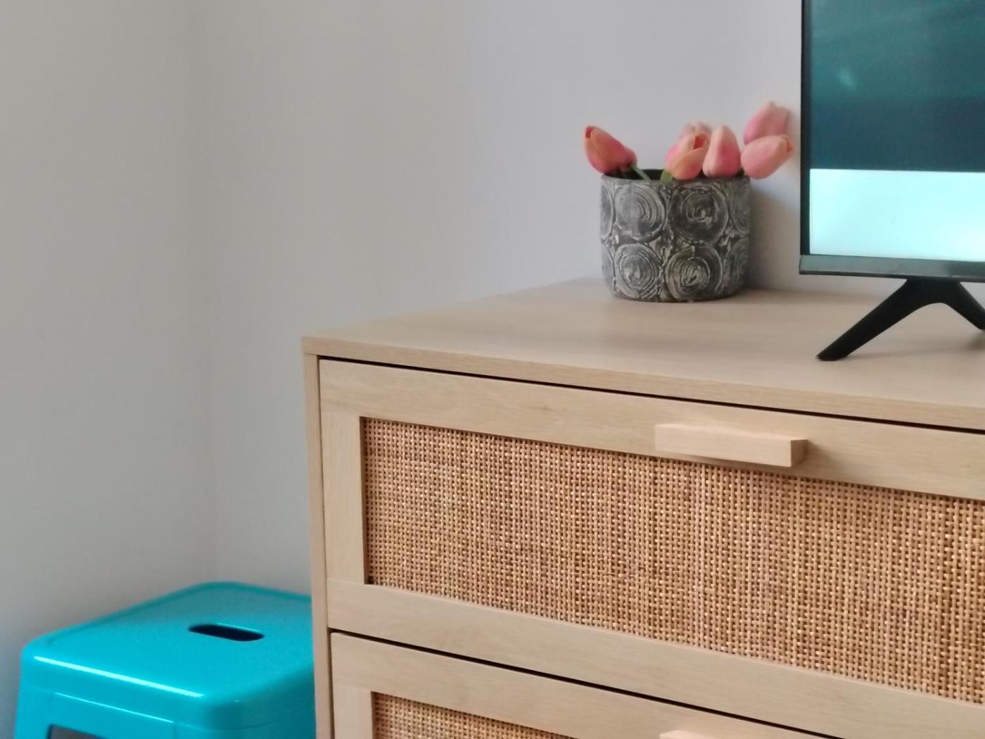 Two-Bedroom Apartment. The air-conditioned apartment has 2 bedrooms and 1 bathroom with a shower and a bidet. The apartment features a washing machine, a tea and coffee maker, a dining area, a wardrobe and a flat-screen TV. The unit has 3 beds.
