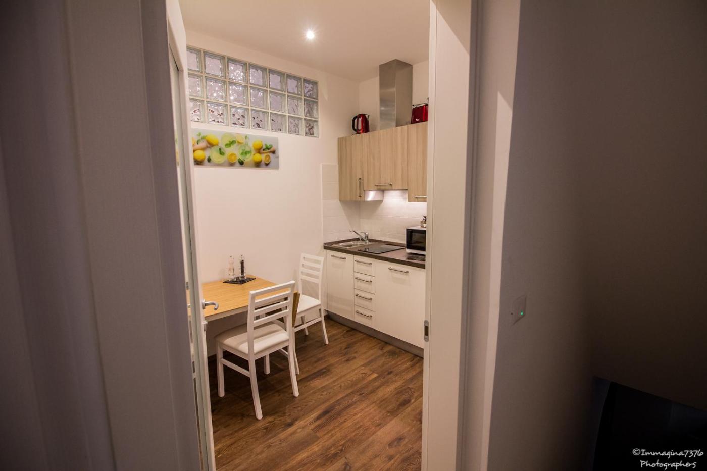 One-Bedroom Apartment. Boasting a private entrance, this air-conditioned apartment comes with a kitchen, 1 bedroom and 1 bathroom with a shower and a hairdryer. Guests can make meals in the kitchen that features a stovetop, a refrigerator, kitchenware and a microwave. The apartment features a flat-screen TV with cable channels, a tea and coffee maker, a dining area, a wardrobe as well as a quiet street view. The unit has 1 bed.