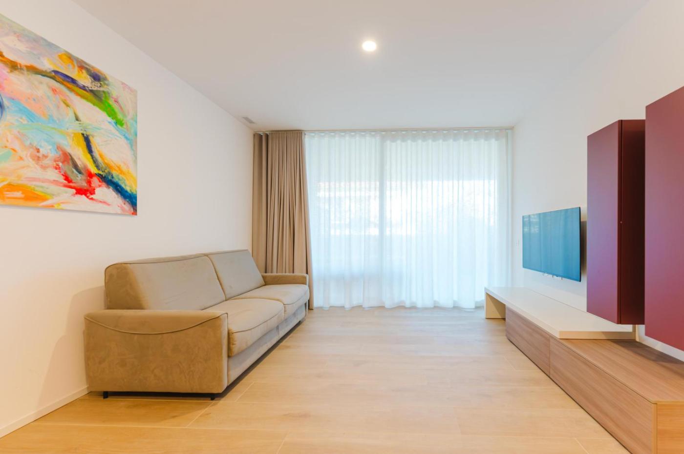 Deluxe One-Bedroom Apartment. Featuring a private entrance, this air-conditioned apartment comprises 1 living room, 1 separate bedroom and 1 bathroom with a shower and a bidet. In the well-fitted kitchen, guests will find a stovetop, a refrigerator, a dishwasher and kitchenware. Boasting a terrace with garden views, this apartment also provides a tea and coffee maker and a flat-screen TV. The unit offers 2 beds. ;